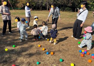 ぐるぐるどっかーんの音楽に合わせてボールが四方に飛んでいくのでみんなでそのボールを拾いにいきます!!